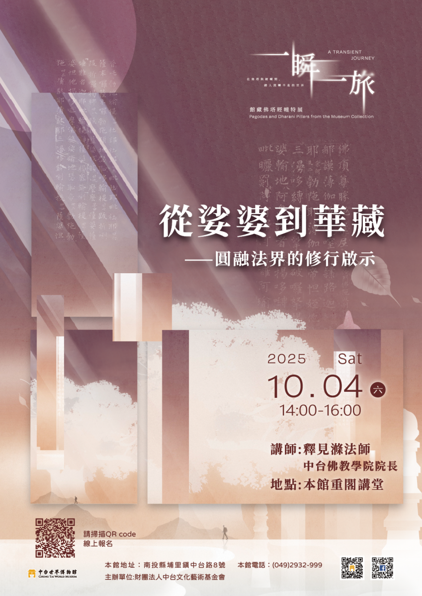 展覽以「覺者的生命教育」為核心,邀請觀者在佛塔與經幢間,踏入流轉不息的世界。透過館藏文物,認識佛教的生命觀點,遇見古代修行者的生命故事;隨著互動體驗,展開一場探索生命的旅程。