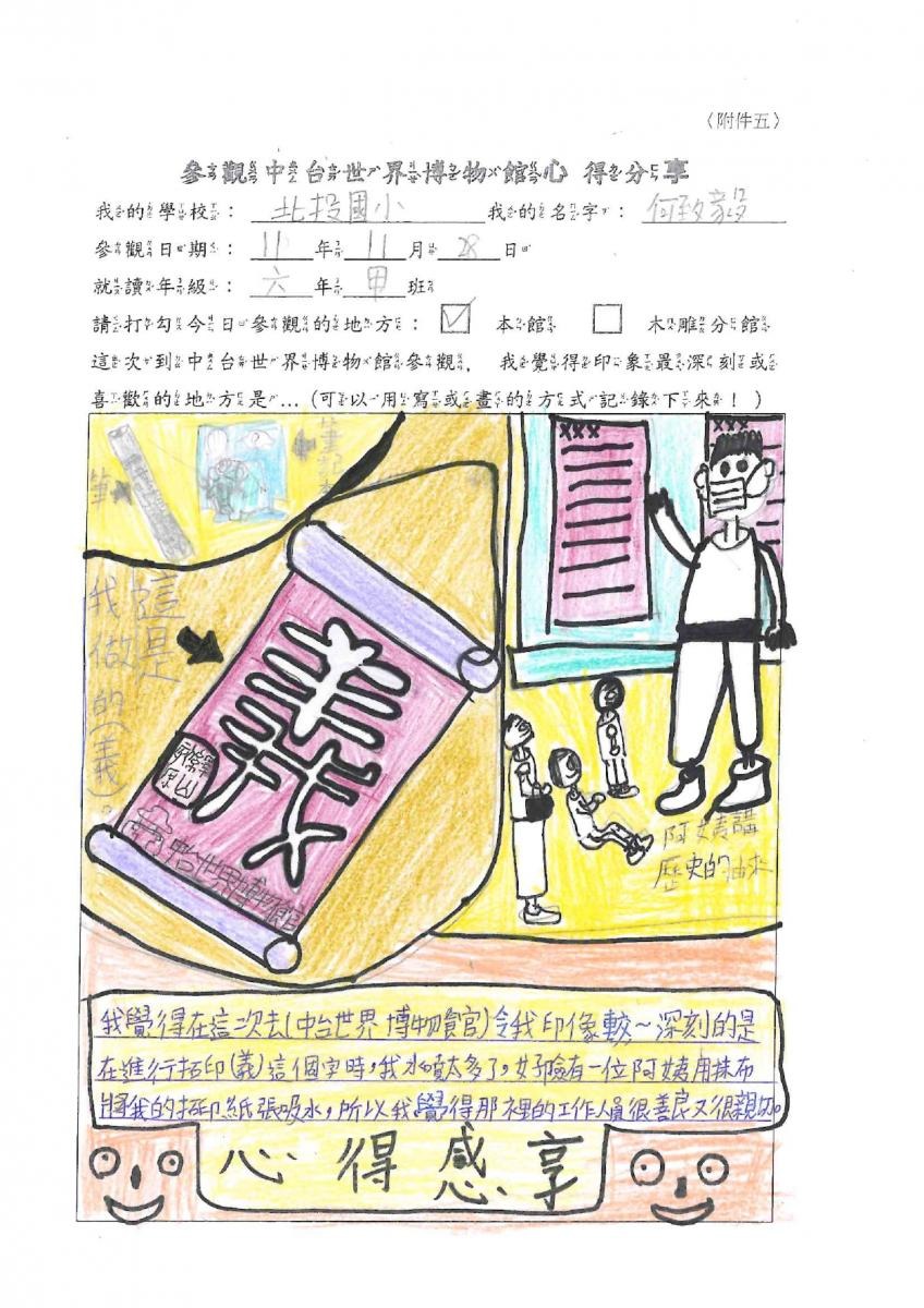 透過校外教學活動,學生們得以運用五感,實際與流傳千年的文物面對面交流互動,也讓義工老師們領學生進入博物館參觀的大門,在這些小小公民的心中,種下一顆種子,期許他們能在未來參觀其他場館時充分利用這些經驗,為自己求學的路途上,多增添一種課堂外的學習方式。中台世界博物館未來也將持續辦理校外教學活動,為更多學子開啟通往知識與文化的探索之門,讓學習的旅程更為豐富多彩。