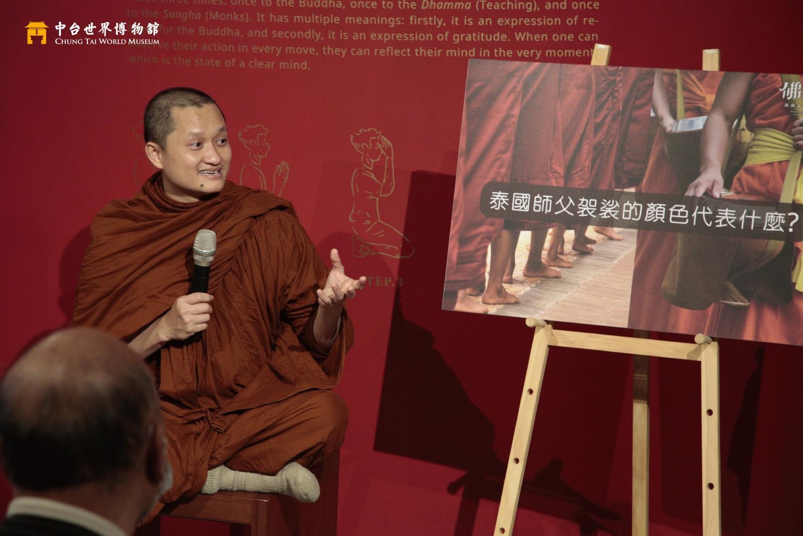 2024年3月,為使觀眾能深入體驗泰國的佛教文化,特別邀請來自台南永康泰國佛寺的孟坤法師來館,分別於3/16、3/30舉辦《Monk Chat 請問阿姜!》的體驗活動。