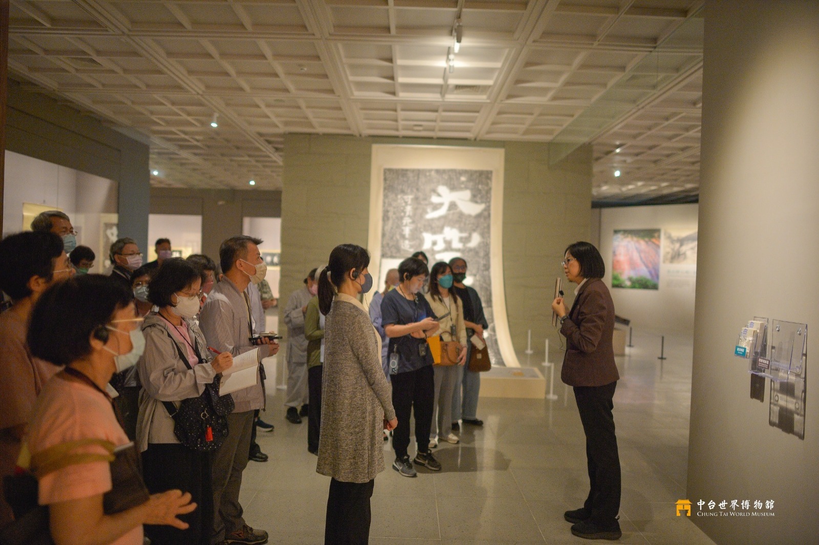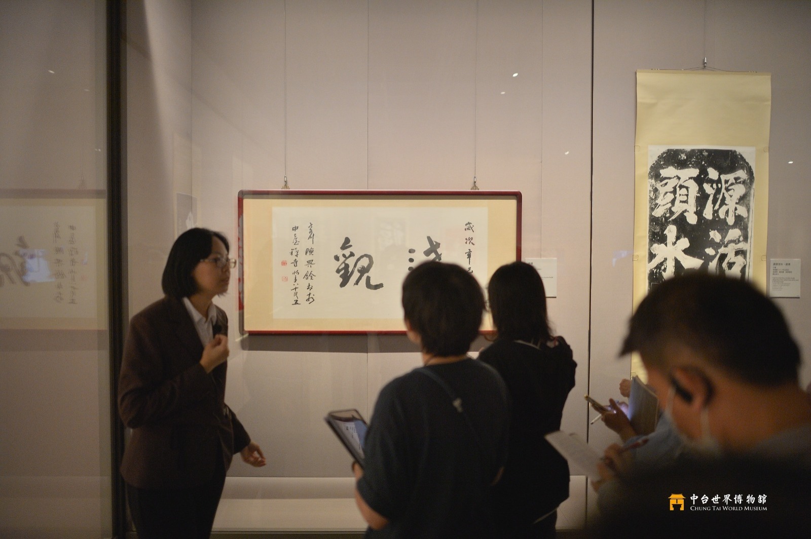 開幕日下午,由策展人親自帶領觀眾進行了特展導覽,深入介紹本次特展的策展理念及榜書文化的深厚底蘊。展覽題名「德大字在」取自佛教經文「得大自在」的諧音,亦蘊含儒家「素其位而行,無入而不自得」的哲理。此次展覽分為「品格涵養」、「生命祝願」、「功業成就」三個單元,並在策展人仔細說明之下,向觀眾娓娓道來每個展件背後執筆者的生命故事與文化意義,並能透過觀賞這些拓本與題榜,一窺古代文人的精神世界和藝術追求。觀眾能在《大空王佛》中看到虔誠的信仰;在《洛社風高》及諸多文人書寫的《壽》字,感受到文人之間的惺惺相惜與祝福。博物館透過展覽串連這些歷史的痕跡,並期望能拉近觀眾與大字榜書之間的距離。在導覽過程中,策展人亦與觀眾分享「生活中的榜書藝術無處不在」,期望觀眾在日常生活中也能覺察書藝之美!