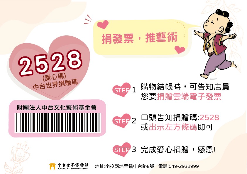 中台世界發票捐贈碼2528,歡迎捐電子發票一起支持中台世界博物館!