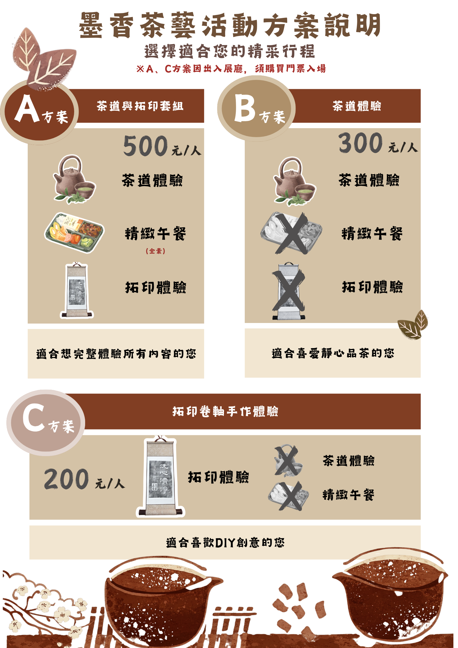 中台世界博物館推出「墨香茶藝」年度限定體驗行程,邀您暫別日常喧囂,體驗一場揉合茶與墨香的慢活時光。讓博物館不僅是知識的殿堂,也是療癒身心的場域。體驗由專人引領,帶您靜靜品味一杯好茶,以精心安排的茶席,讓溫潤的茶香陪伴沉澱思緒;隨後將邀您親自動手製作一幅拓印,從上墨、拍打到揭紙,專注於手邊的力道,感受墨與紙張交織的魅力。