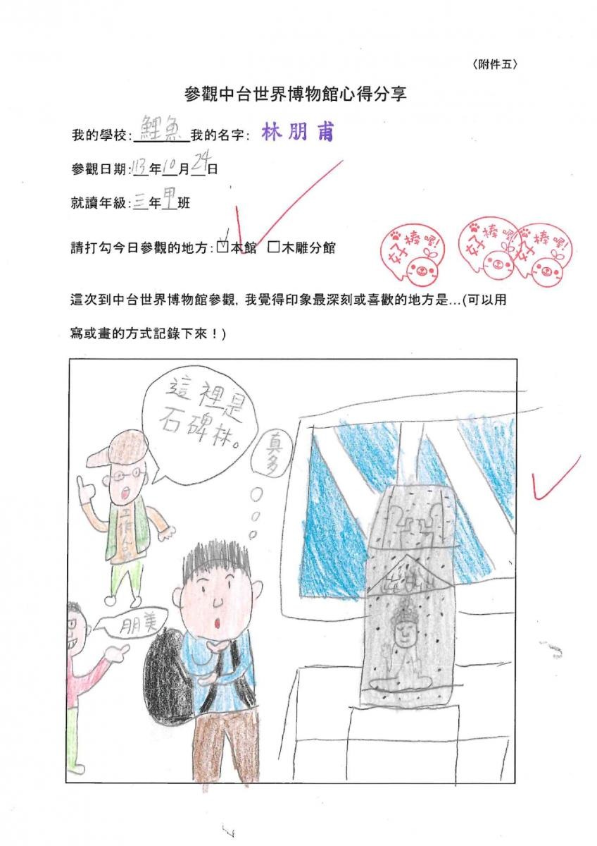透過校外教學活動,學生們得以運用五感,實際與流傳千年的文物面對面交流互動,也讓義工老師們領學生進入博物館參觀的大門,在這些小小公民的心中,種下一顆種子,期許他們能在未來參觀其他場館時充分利用這些經驗,為自己求學的路途上,多增添一種課堂外的學習方式。中台世界博物館未來也將持續辦理校外教學活動,為更多學子開啟通往知識與文化的探索之門,讓學習的旅程更為豐富多彩。