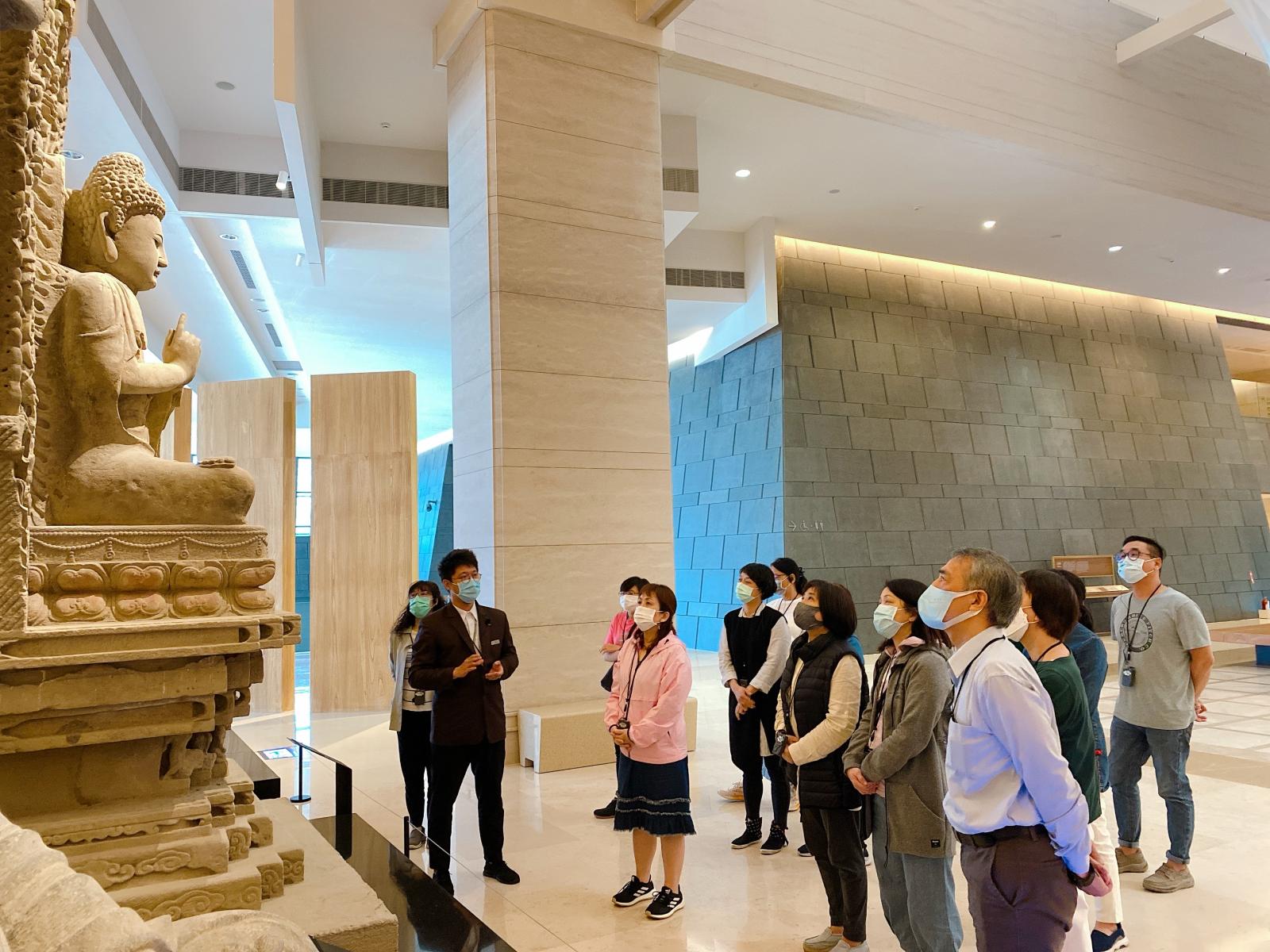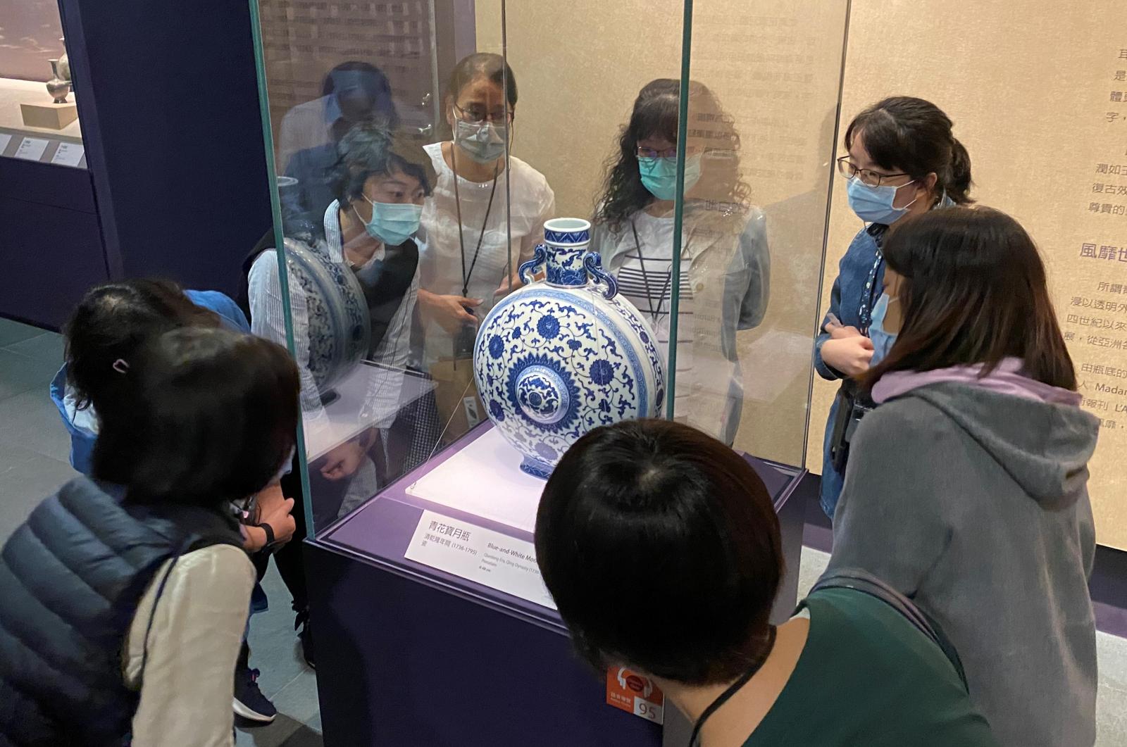 就如同,老師帶領大家在寶華供養展廳觀察「青花寶月瓶」,瓶身上有著「海水江涯」紋,具「江山永固」之特殊含意。另外還有蝙蝠,象徵「福」氣等,無不是中華民族用以表達祝福和希冀的心念。最後,老師以展件上的圖案祝福所有參加的學員們平安順利,同時也為活動畫下完美的句點。
