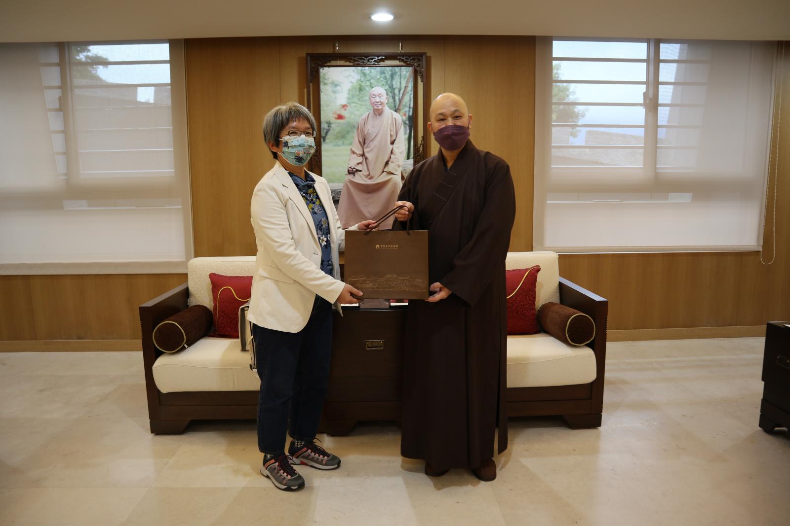 館長見諶法師與林麗江處長相互致贈結緣品。