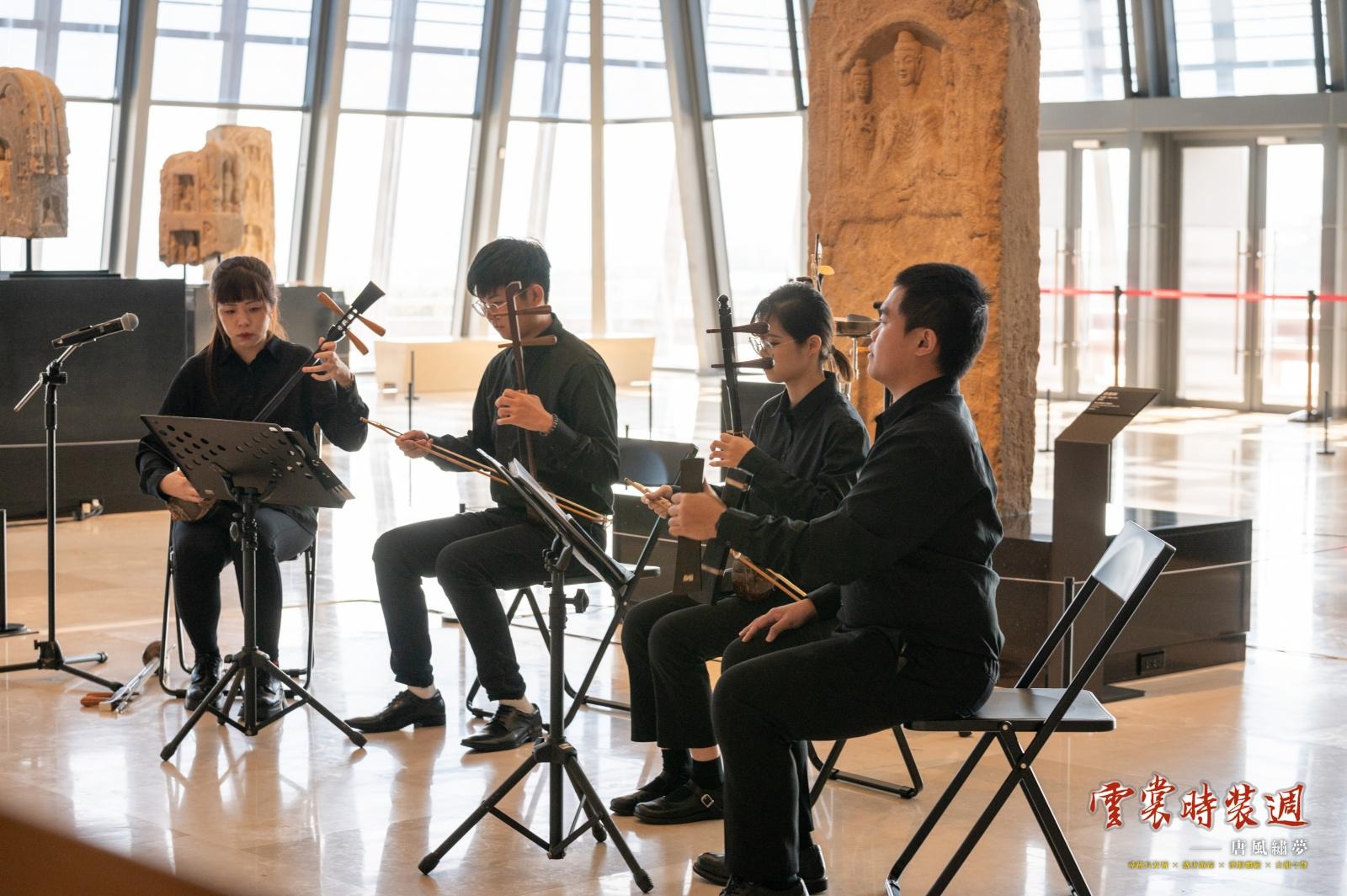 11月9日由普台高中絲竹樂團帶來《青花瓷》、《但願人長久》、《在水一方》等耳熟能詳的曲目,吸引眾多觀眾駐足,更有觀眾跟隨著曲目一同哼唱。11月10日,博物館邀請到國立臺北藝術大學傳統音樂學系的古琴琵琶小組與北管樂演奏家許庭瑄、陳奕憲、何信展、郭庭瑜,在博物館的碑林展廳中分別帶來不一樣的聽覺饗宴。上午先由古琴琵琶小組的演奏,帶領聽者們一同欣賞《平沙落雁》的瀟灑與《詩經》的婉轉淒美。下午則透過北管樂演奏,讓觀眾們認識到有別於熱鬧高亢的北管樂,感受到北管細曲的悠揚細膩。