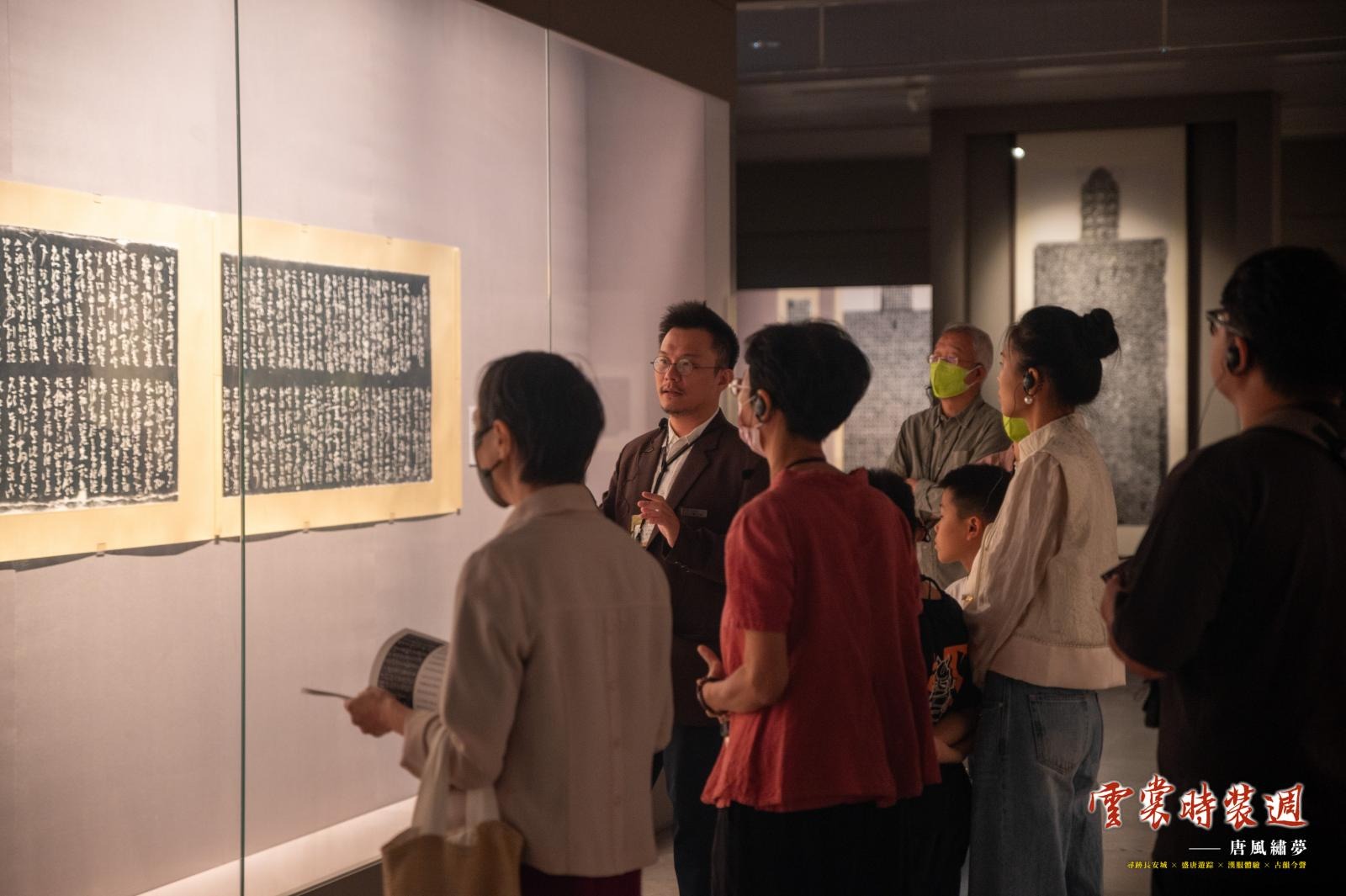 此外,延續去年時裝週活動中備受觀眾喜愛的主題導覽活動,11月8日由扮演唐代仕女的導覽員,帶來館藏時裝主題導覽。導覽員從自身的服飾解說帶到館藏展件的服裝細節。生動地介紹唐代服飾、審美標準及其背後的文化意涵。11月10日的館藏唐代人物主題導覽,導覽員從歷史上的名家字帖依序介紹到紀載著宗教、文化的碑文,觀眾透過深入淺出的講解,彷彿走進歷史場景中,一窺唐代社會風貌,並認識了唐代著名的書法名家、政治人物、貴族等。許多參與觀眾表示在有趣的解說下,對唐代文化有了更加具體的認識。