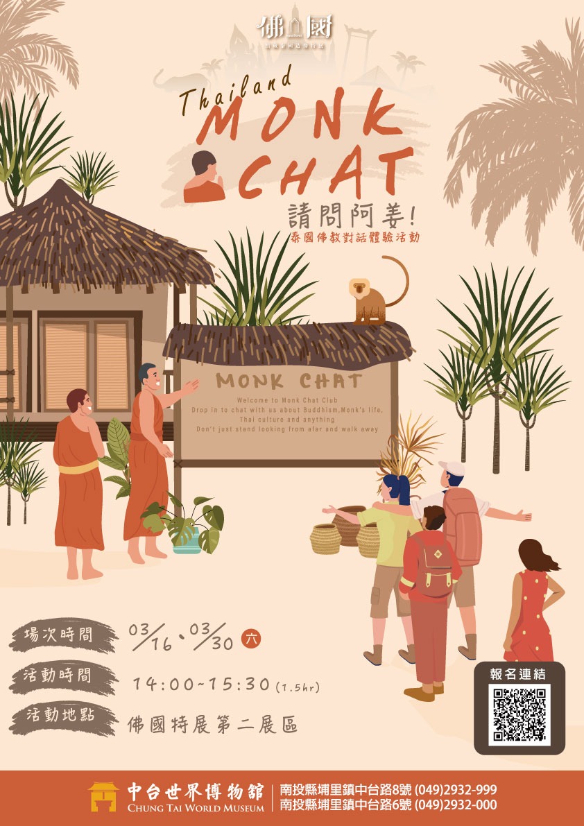 2024年3月,為使觀眾能深入體驗泰國的佛教文化,特別邀請來自台南永康泰國佛寺的孟坤法師來館,分別於3/16、3/30舉辦《Monk Chat 請問阿姜!》的體驗活動。