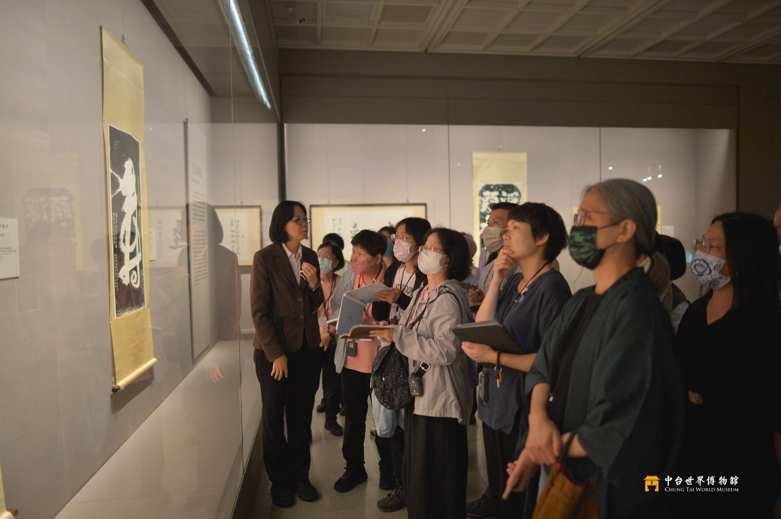 開幕日下午,由策展人親自帶領觀眾進行了特展導覽,深入介紹本次特展的策展理念及榜書文化的深厚底蘊。展覽題名「德大字在」取自佛教經文「得大自在」的諧音,亦蘊含儒家「素其位而行,無入而不自得」的哲理。此次展覽分為「品格涵養」、「生命祝願」、「功業成就」三個單元,並在策展人仔細說明之下,向觀眾娓娓道來每個展件背後執筆者的生命故事與文化意義,並能透過觀賞這些拓本與題榜,一窺古代文人的精神世界和藝術追求。觀眾能在《大空王佛》中看到虔誠的信仰;在《洛社風高》及諸多文人書寫的《壽》字,感受到文人之間的惺惺相惜與祝福。博物館透過展覽串連這些歷史的痕跡,並期望能拉近觀眾與大字榜書之間的距離。在導覽過程中,策展人亦與觀眾分享「生活中的榜書藝術無處不在」,期望觀眾在日常生活中也能覺察書藝之美!