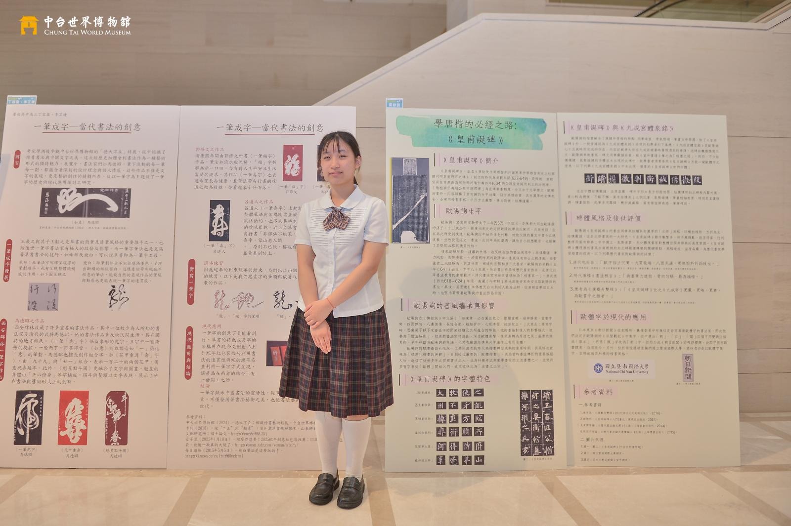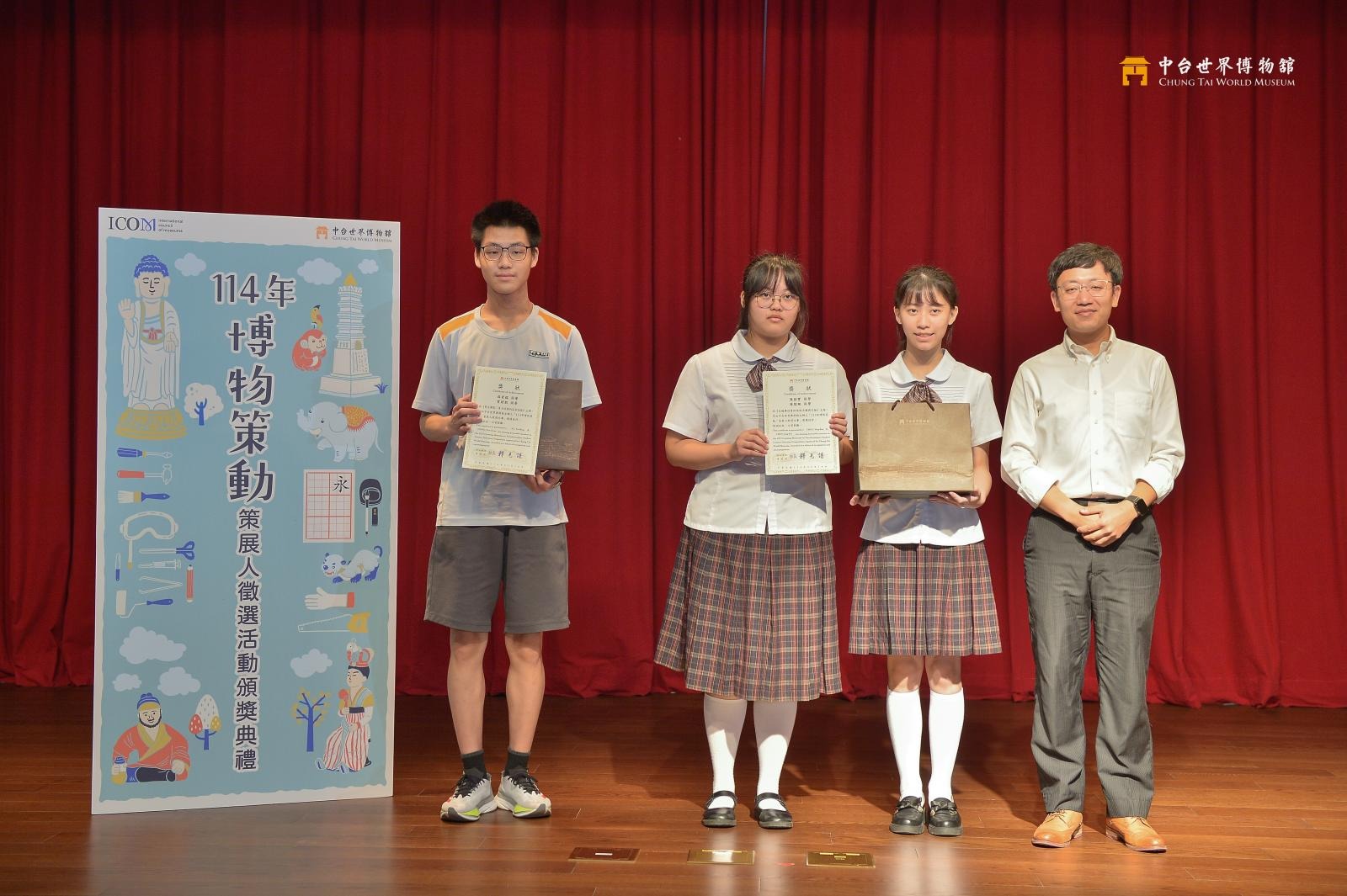 典禮中,學生輪流分享學習歷程與策展心得。金獎作品《一筆成字──當代書法的創意》由丁容盈與李芷婕同學創作,她們表示:「我們希望藉由策展讓觀眾看見書法的當代表現與形式變化。」梁綜謀同學以《學唐楷的必經之路:皇甫誕碑》獲得銀獎,並感謝博物館提供的圖文資源,使他能創新地詮釋書法碑文。銅獎作品《瀟散灑落、內含剛柔──孔子廟堂碑》由許家宜與江禮如同學共同完成,她們分享:「我們從碑拓中讀出歷史的溫度,也學會了如何引用與整合資料,讓文物以更貼近生活的方式呈現。」