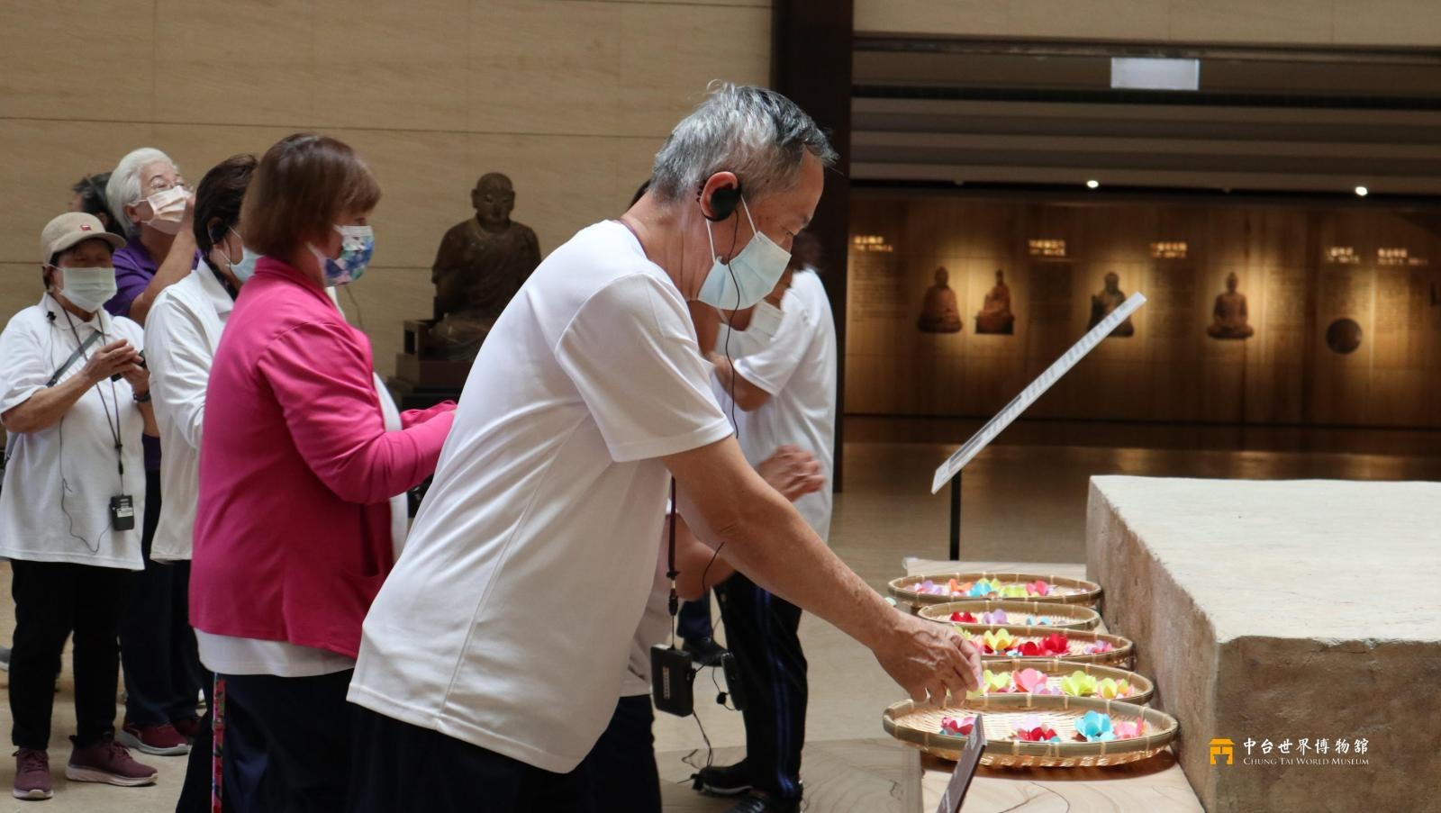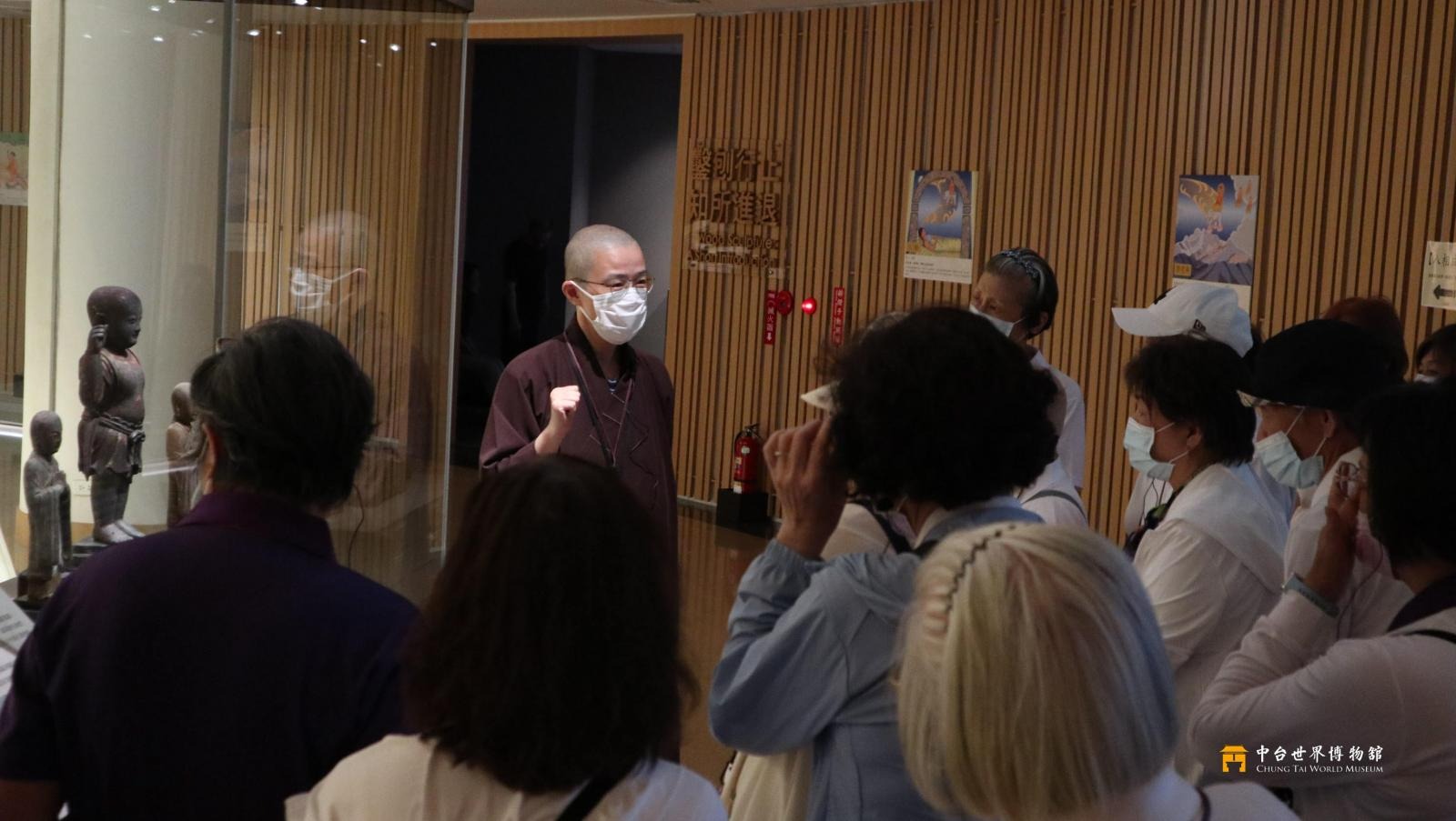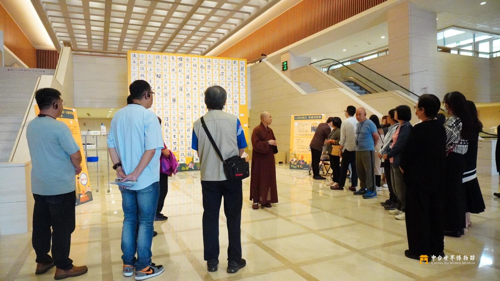 此次活動也特別開出兩場「心齡保健」主題導覽,由中台世界博物館館長,帶領觀眾探尋本館與《心經》有關的展件,認識《心經》的思想、歷史與文物故事。許多觀眾遠道而來參加導覽,在過程中,除了仔細聆聽解說,也把握機會認真反思、詢問問題。導覽也在一問一答間,傳遞許多生活智慧,達到反照自心之意義。