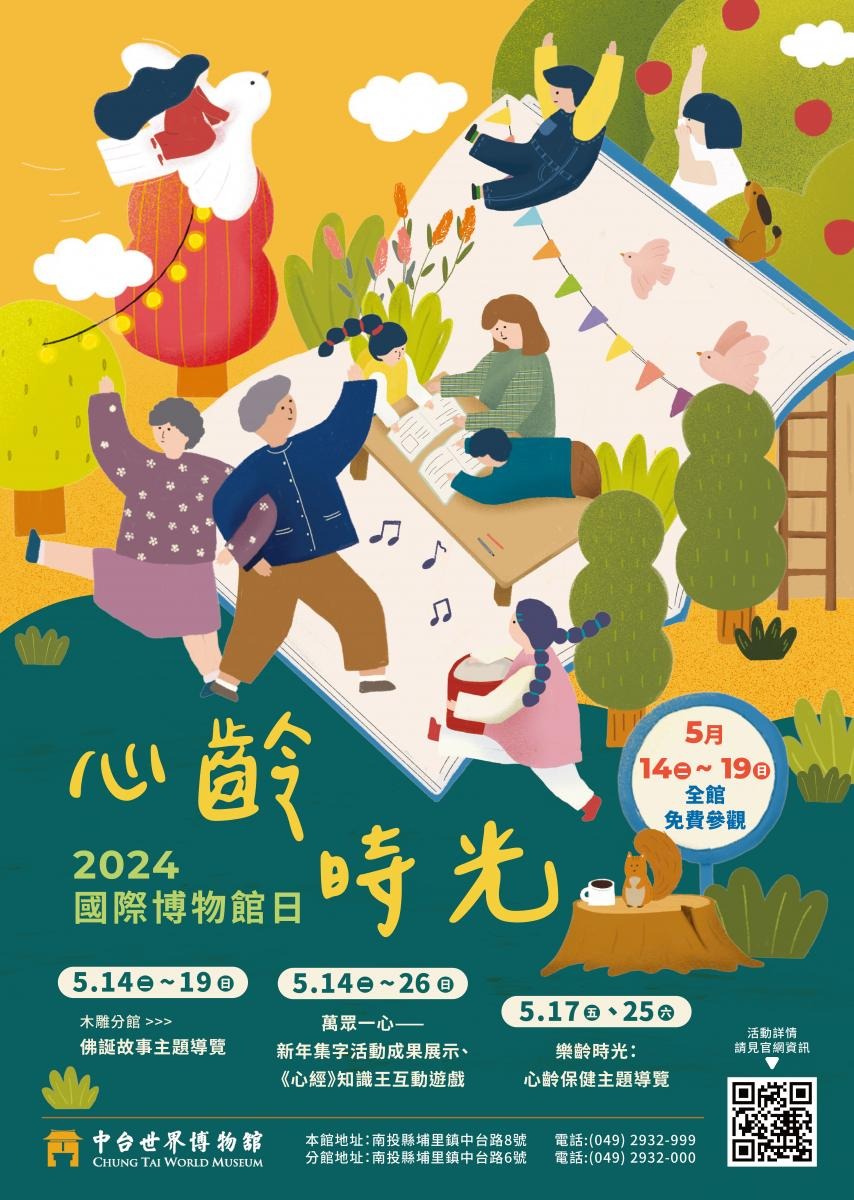 2024年5月,中台世界博物館為呼應國際博物館日年度議題:博物館的教育與研究(Unlocking Knowledge:Museums for Education and Research),以「心齡時光」為主題,辦理「萬眾一心集字展」、「心齡保健」主題導覽、佛誕故事導覽與《心經》知識王活動。