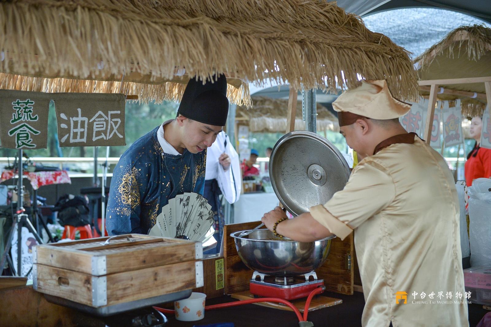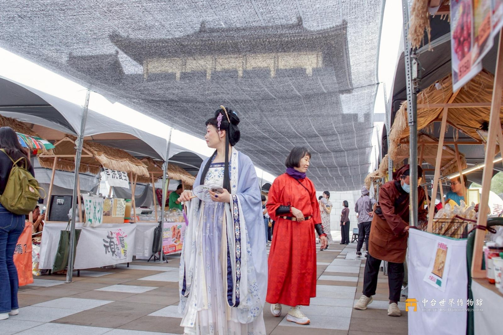 週末活動中,亦邀請「頑在藝起市集」共襄盛舉。攤主們換上古風裝扮,化身古代店小二迎客;香氣四溢的蔬食料理、手工藝品與異國風情美食琳瑯滿目。街頭藝人以悠揚笛聲為背景,讓賓客在漫步市集中,享受視覺、聽覺與味覺的多重饗宴。 「雲裳萬象──唐代風華的文化派對」不僅是一場活動,更是一段穿越時光的文化旅程。觀眾在換裝、遊戲與表演的沉浸體驗中,重拾唐風之美,體驗那份兼容並蓄、雍容華貴的文化氣度,也讓傳統在現代的光影中,綻放出新的生命力。 週末活動中,亦邀請「頑在藝起市集」共襄盛舉。攤主們換上古風裝扮,化身古代店小二迎客;香氣四溢的蔬食料理、手工藝品與異國風情美食琳瑯滿目。街頭藝人以悠揚笛聲為背景,讓賓客在漫步市集中,享受視覺、聽覺與味覺的多重饗宴。 「雲裳萬象──唐代風華的文化派對」不僅是一場活動,更是一段穿越時光的文化旅程。觀眾在換裝、遊戲與表演的沉浸體驗中,重拾唐風之美,體驗那份兼容並蓄、雍容華貴的文化氣度,也讓傳統在現代的光影中,綻放出新的生命力。