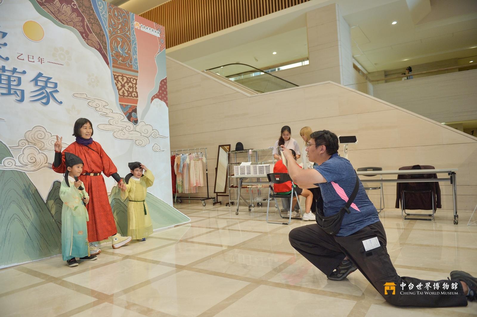 活動期間,館內宛如萬國博覽之城,參與者身著各式服飾進入展廳:有人穿著漢服、有人披上和服,也有來自印度、東南亞等民族傳統服飾,呈現「萬象之美」的文化共融。 許多觀眾興致勃勃地換上唐風服飾,化身仕女與文人。孩童穿著小小漢服,天真可愛;小女生披上圓領袍,英姿颯爽,展現唐代女子的自信與灑脫。博物館也特別設拍照打卡區,吸引眾多民眾換裝留影,定格一幕幕古韻悠然的時光片段。