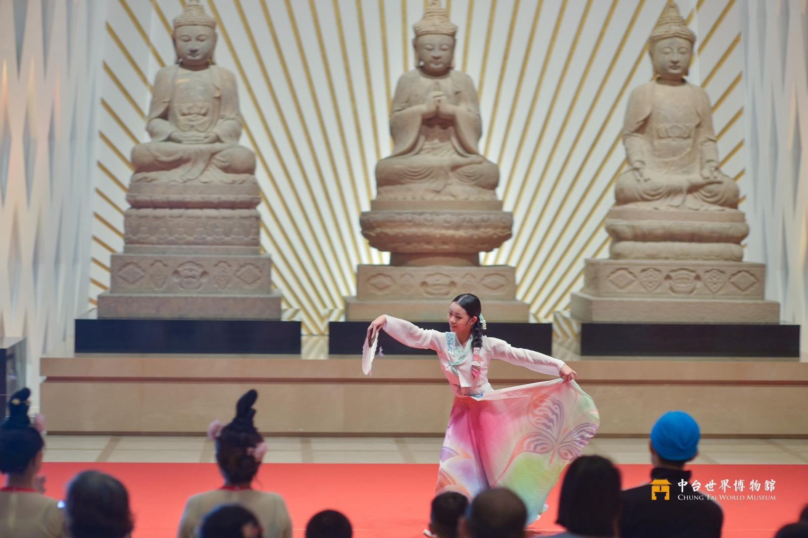 11月8日,博物館特別邀請鄭旭娟老師與其學生帶來古箏演出。演出曲目包括〈笑傲江湖〉、〈小毛驢〉、〈新鴛鴦蝴蝶夢〉等。悠揚箏音在展廳中流轉,旋律時而婉轉細膩,時而激昂澎湃,吸引許多觀眾駐足欣賞,沉醉於古韻悠長的樂音之中。 11月9日,則由「薪傳舞蹈團」帶來兩支舞作。第一支舞〈飛花蝶語〉以蝴蝶為靈感,舞者以輕盈的身姿描繪出花間起舞的夢幻景象;第二支舞〈裂蓮〉則展現「動與靜」的張力,舞者以蓮花破泥而出的姿態,展現生命的韌性與綻放的力量。舞者們以優雅的律動與深情的演繹,帶領觀眾穿越時空,感受萬象風華的絢麗與靜謐。