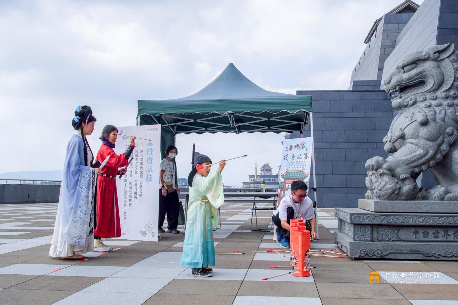 「唐風樂遊坊」闖關活動是本次盛會的重要亮點,結合投壺、葉子戲、紙扇彩繪等古風遊戲,讓觀眾在玩樂間領略古人的閒情雅趣。 投壺場上,大小朋友輪番上陣,執羽箭而擲,命中「壺」時掌聲與笑聲四起;葉子戲關卡中,觀眾擲骰對決,歡呼聲此起彼落;在紙扇彩繪區,許多民眾久違地靜下心來創作,於扇面上描繪蘭花的淡雅、蓮花的高潔,體驗藝術與文化的交融之美。 活動期間內,博物館化身為古風遊樂場,寓教於樂的氛圍吸引眾多家庭同遊,笑語盈盈,不絕於耳。