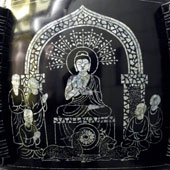 圖二 大雄寶殿之螺鈿尊形漆瓶 八相成道圖紋(說法)