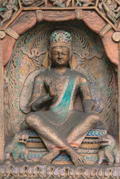 至南北朝時造像立寺的規模已相當盛大而輝煌。如道安在襄陽檀溪寺造丈六釋迦像,竺道鄰在山陰昌源寺造無量壽像,著名的彫塑家戴逵和其子戴顒在山陰靈寶寺造彌勒及夾侍二菩薩木像,南朝時宋武帝造無量壽金像,明帝造丈六金像,梁武帝在光宅、愛敬、同泰等寺大造丈六彌陀金像。北朝造像更是大規模開鑿石窟,含蓋黃河兩岸西北高原,分布於通往印度的交通要道上,且高大壯闊,皇皇巨制,氣魄之大,已然超越了印度開窟造像的規模。
