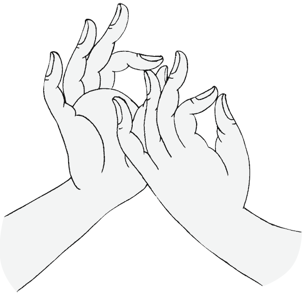 Hand Gesture of Turning-the-Dharma-Wheel. Shown with the left palm facing upward while the right palm facing outward in front of the chest, with the thumb and forefinger of each hand touching each other to form a circle. It symbolizes the Buddha preaching the Dharma to help sentient beings eliminate vexations and purify their minds.