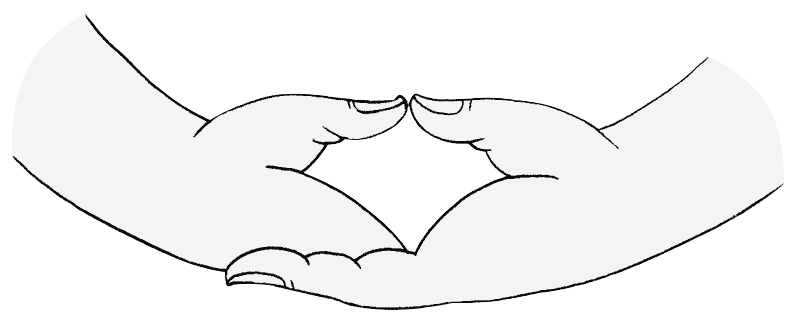 Hand Gesture of Meditation. The two hands rest on the lap, right hand on top of the left hand with fingers fully stretched and the palms facing upward. The tips of the thumbs slightly touch each other. It represents a state of deep meditation and is often used in images of a Buddha.