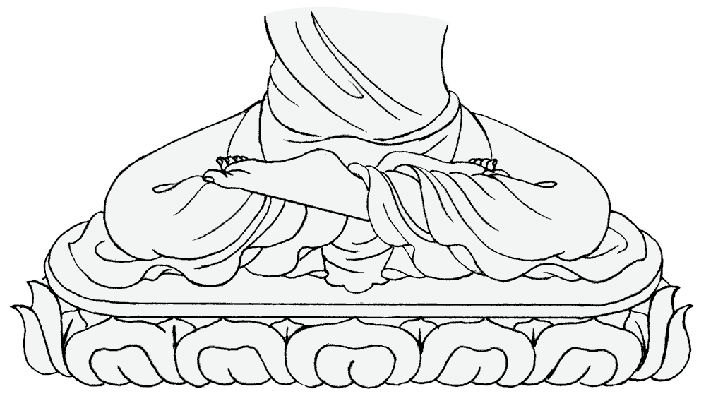 A cross-legged sitting posture, placing each foot on the opposite thigh. When the left foot is on top, it is the "demon subduing position." When the right foot is on top, it is the "auspicious position." This is an ideal position for sitting meditation because the body is centered and one can sit steadily over a long period of time. It is conducive to achieving a state of deep meditation.