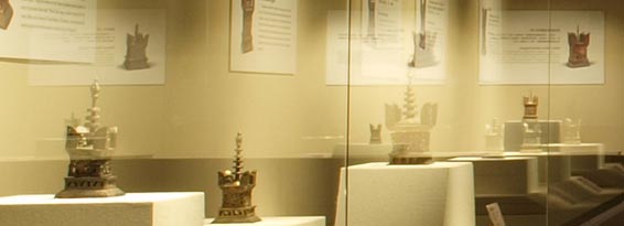 Gallery 301 features the theme of Ashoka Pagodas, showcasing the collections of Ashoka Pagodas made of different materials from the museums in Zhejiang Province, China. When you step into this gallery, you will be immediately transported back to the time of Wuyue Kingdom, when precious pagodas dotted the landscape for miles and miles. The Ashoka Pagodas commissioned by King Qian Chu were metal miniature pagodas designed to hold scrolls of Buddhist scriptures and bury relics. Most of the unearthed Ashoka Pagodas today are made of bronze, with a few made of iron. The Ashoka Pagodas on display in this gallery are made of silver, bronze, gilt bronze, iron and gilt iron. The most outstanding piece among them is the Five Dynasties gilt pure silver Ashoka Pagoda. This Ashoka Pagoda is the first artifact unearthed from the ruins of Leifeng Pagoda, and one of only two pure silver Ashoka Pagodas that exist in the world today. This pagoda was restored in 2008. The pagoda and the gold relic bottle inside the pagoda are on loan to Taiwan for the very first time.