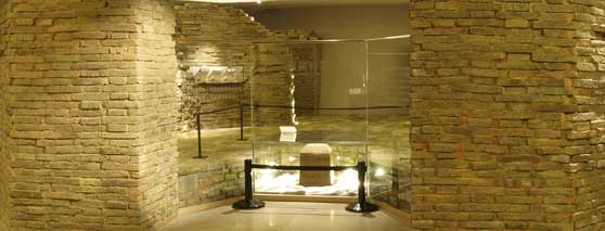 Gallery 302 showcases the cultural artifacts unearthed from the ruins of Leifeng Pagoda and from its cellar, the Underground Palace. The unearthed artifacts from the ruins of Leifeng Pagoda can be classified into three main groups: remnants of the pagoda building structure, stone-carved artifacts, and Buddhist artifacts. Among these artifacts, sutra storage bricks are considered to be the most special and unique items. A small round opening was drilled into either the top or bottom end of some of the bricks that made up the structure of the pagoda, in which a sutra scroll was inserted and hidden. It was in these caches that scrolls of The Precious Chest Seal Dharani Sutra of the Whole Body Relics Concealed in All Buddhas’ Minds laid hidden for ages.