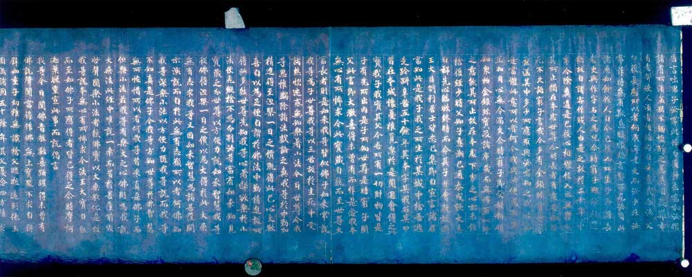 The scroll is the most complete handwritten edition of this sutra in existence today. The calligraphy was meticulous and exact. It is listed as one of the national cultural properties of China, classified as Class A Heritage. The parable presented in “The Biography of Huang Shiqiang,” which prefaced the text of the sutra, is considered an important piece of writing with high historical and literary value.