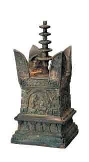 King Ashoka (304-232 BCE), the third king in the Mauryan Dynasty (321-185 BCE) of India, was a famous patron of Buddhism. But in his early years, he was infamous for threatening his neighbors with aggressive wars and terrorizing his own people with brutal tyranny. The turning point of his life came when he met a great Indian Buddhist monk who introduced him to the Buddha’s teachings. From then on he was transformed from a destructive tyrant to a kind and gentle giver. All over the land he built stupas to enshrine the Buddha’s relics. These stupas later became known as “Ashoka Pagodas.”