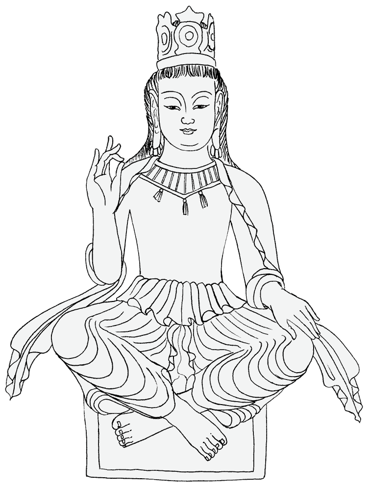 交腳は、両足をX型に交差させた姿を言います。この姿は、古代王国ガンダーラですでに出現しており、中国北朝時代には大量に弥勒菩薩の造形に運用されました。この姿は弥勒菩薩専用の坐法と言う事ができます。