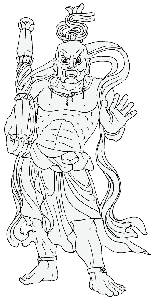 金剛力士は金剛杵(仏敵を退散させる武器)を持ち、仏法の天神を守り、よく寺院の表門の両側に安置され、寺院を守っています。