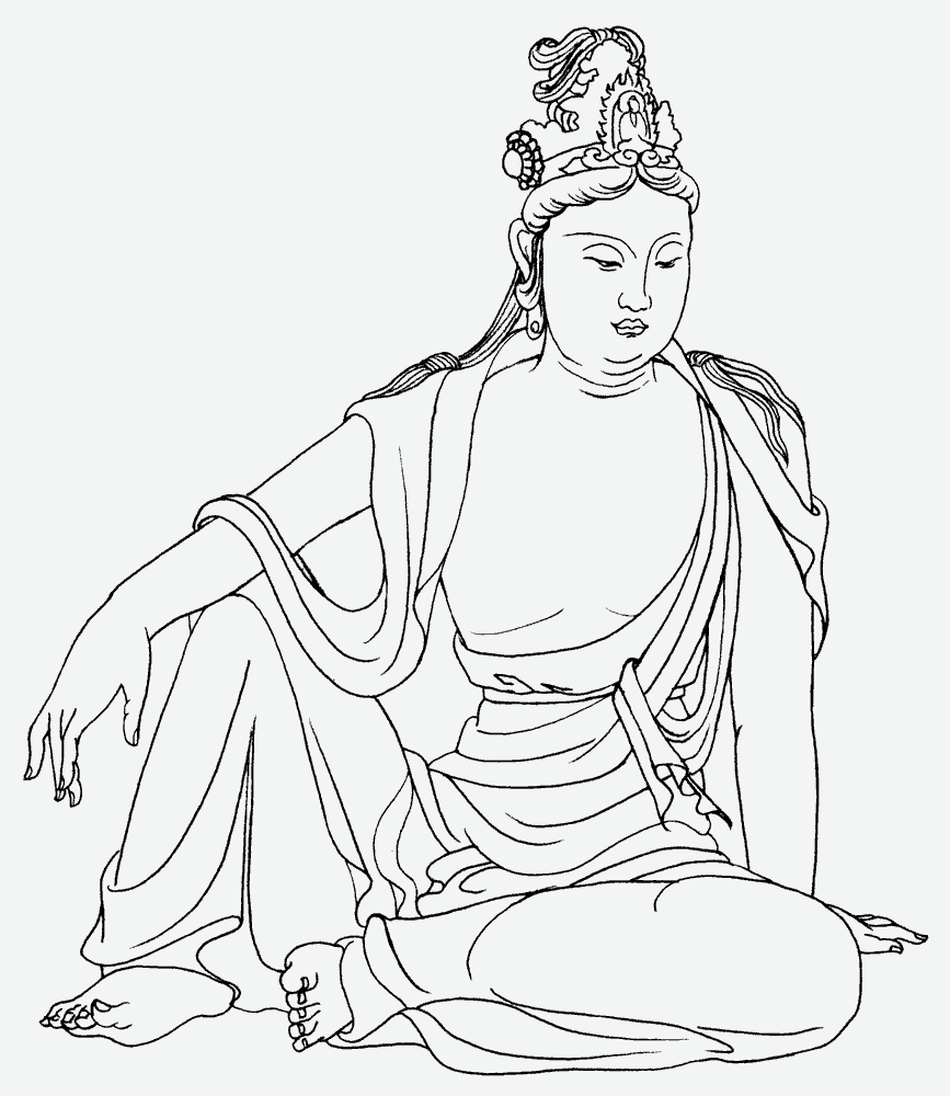 自在坐姿早期出現於印度阿姜塔石窟的龍王像,後相傳唐代周昉創作自在坐姿的水月觀音,宋代以後成為菩薩像的流行形式。