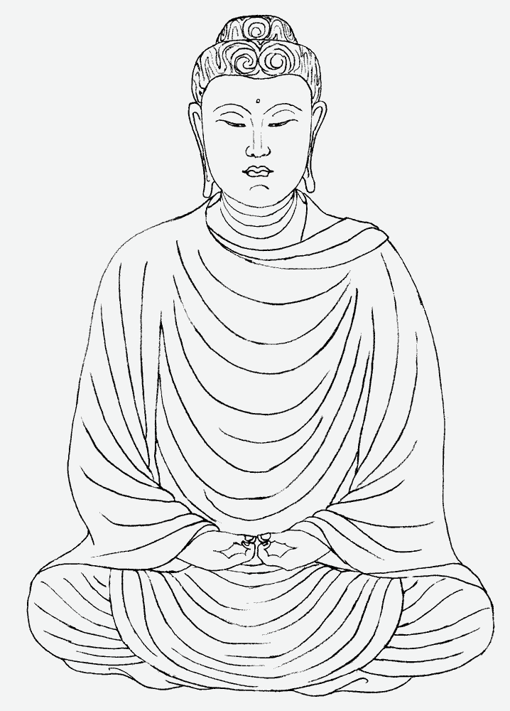通肩用以表示福田之相,於乞食、坐禪、誦經、經行等時披之。