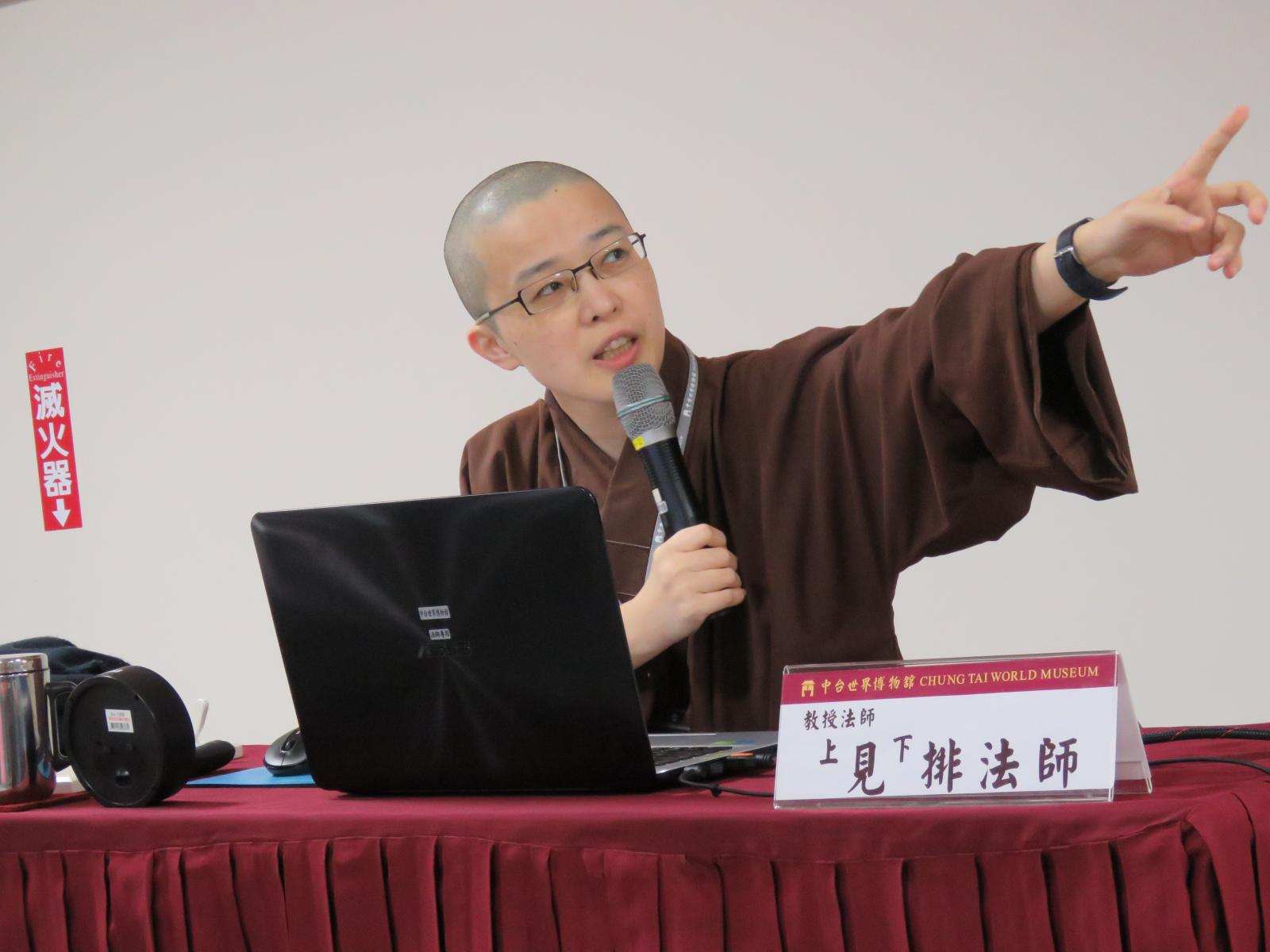 副馆长暨木雕分馆馆长见排法师解说拓印文化及本馆展件