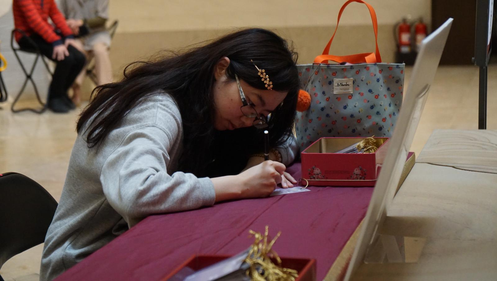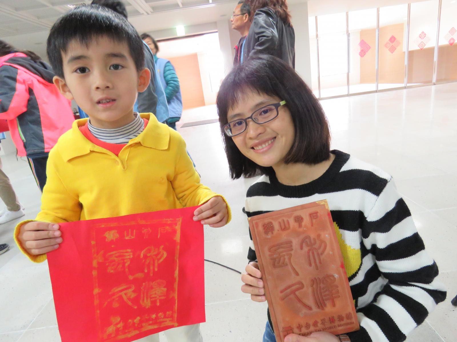 新春限定的拓印春联斗方活动,为馆内迎来近70位对碑刻文化及馆藏拓本有兴趣的朋友。活动中,不分男女老少,在副馆长暨木雕分馆馆长见排法师细心解说下,动手展开一场传统文化的新体验。于轻捶椎拓、擦墨上纸间,众人纷纷展现出丰硕的成果,大红金墨斗方与张张尽兴的笑脸,相互辉映,乐此不疲。