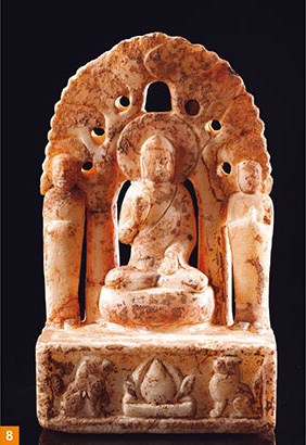 北朝时期的银杏叶式圣树图像,不仅出现在雕刻细致、制作精美的大型造像,在数量众多的民间造像中也十分常见,这类造像大多雕工粗简、体积小巧(图8)。这一现象显示了银杏叶式圣树图像深入社会各个阶层,不论士庶贵贱,咸皆熟悉银杏树即是佛教圣树。换句话说,在北朝晚期,银杏作为佛教圣树的身分已为社会大众所认同,广泛流行。